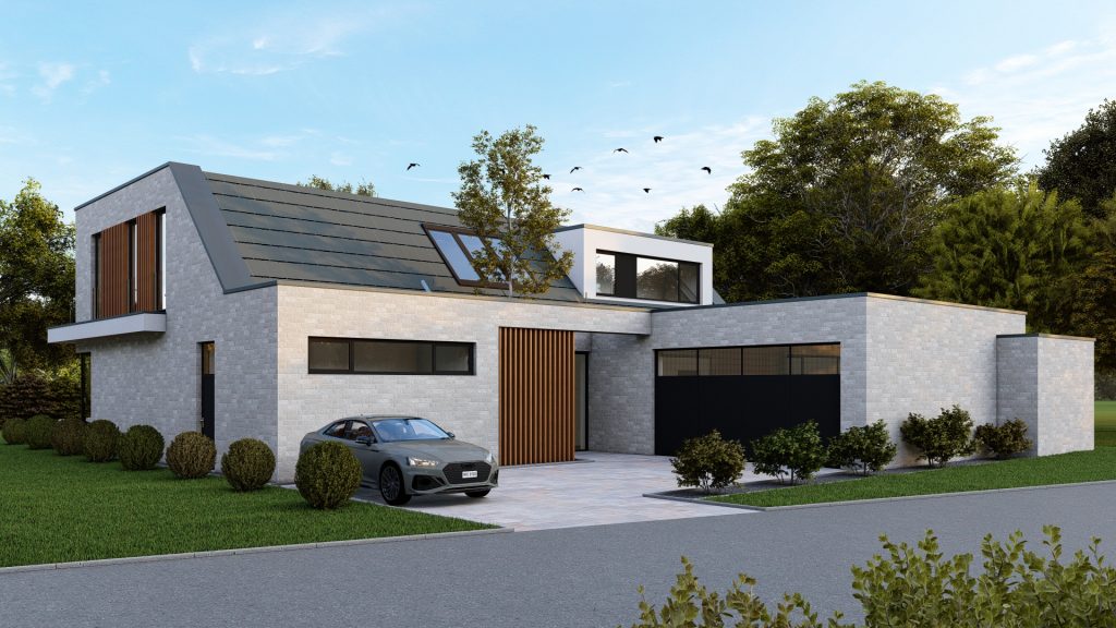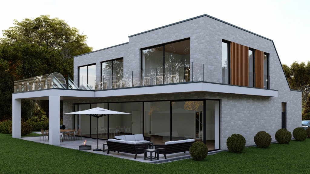 Dieser Blick wird im Obergeschoss durch eine ausladende Dachterrasse fortgeführt und mit einem anliegenden Wellness- und Badbereich in Gänze vollendet. Der Grundriss und die Gebäudeorientierung ermöglichen vom Außenraum aus interessante Blickbezüge ins Gebäude – ein Ort, um zur Ruhe zu kommen, ein Zuhause zum Wohlfühlen.